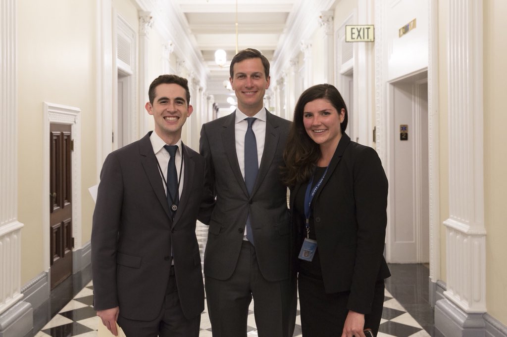 Aunque ya no tiene permisos para conocer información confidencial, el yerno de Donald Trump ha sido el encargado de las negociaciones para resolver el conflicto entre Palestina e Israel, además ha servido como enlace entre México y Estados Unidos. Kushner perdió sus accesos a información clasificada debido a las acusaciones de que realizaba negocios personales, y por supuestamente dejarse influenciar por otros gobiernos. De acuerdo con información de The Washington Post, Kushner fue quien convenció a Trump de venir a México como candidato presidencial y de permanecer en el Tratado de Libre Comercio de América del Norte (TLCAN). Avi Berkowitz, asesor de Jared Kushner