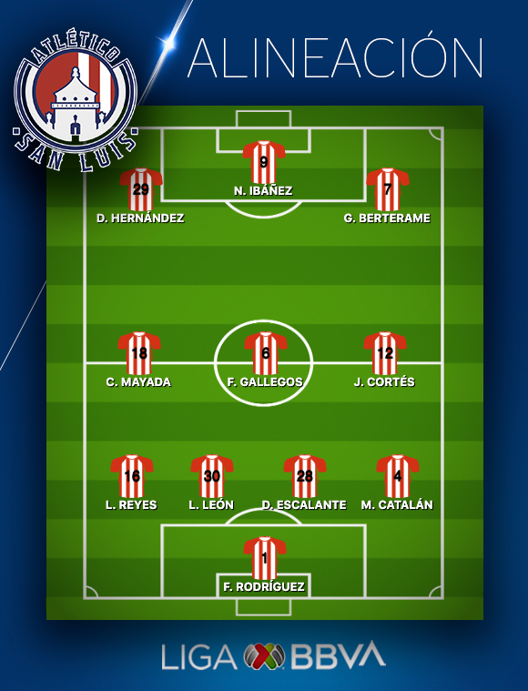 Deporte LocalSan Luis Potosí, S.L.P. Atlético de San Luis sorprendió con par de novedades en el 11 titular que enfrentará a los Gallos Blancos en Querétaro, partido correspondiente a la Jornada 7 de la Liga Mx en el Clausura 2020. Para el juego en La Corregidora, el técnico “Memo” Vázquez apostó con el juvenil Diego Hernández de arranque para sumar minutos en la regla del menor, siendo la otra novedad en el cuadro titular Javier Cortés, mediocampista que sufrió en días pasados un accidente automovilístico. San Luis comenzará con Felipe Rodríguez en la portería; en la defensa Matías Catalán, Luis León, Dionicio Escalante y Luis Reyes; en medio campo Javier Cortés, Felipe Gallegos, Camilo Mayada y Diego Hernández; en la delantera Nicolás Ibáñez y Germán Berterame. El partido arrancará éste domingo en punto de las 5 de la tarde con transmisión a través de Imagen y Fox Sports.